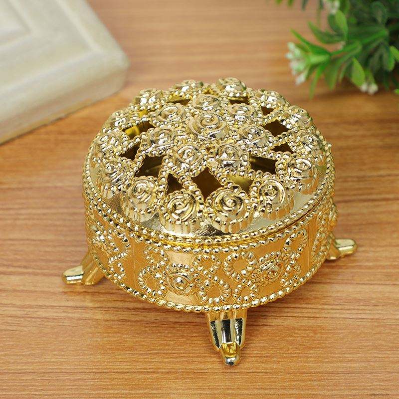 Conteneur de dragées en plastique, boîte en plastique Oriental brûleur d'encens forme or argent dragées boîte poitrine Oriental