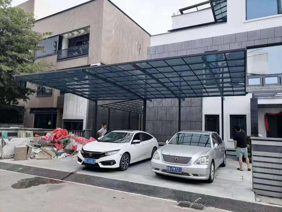 Abri de voiture mobile en polycarbonate bon marché avec cadre en aluminium, imperméable, pour le stationnement des voitures, avec garantie de 15 ans