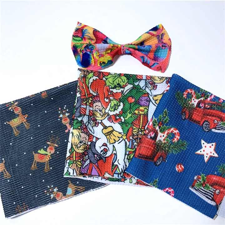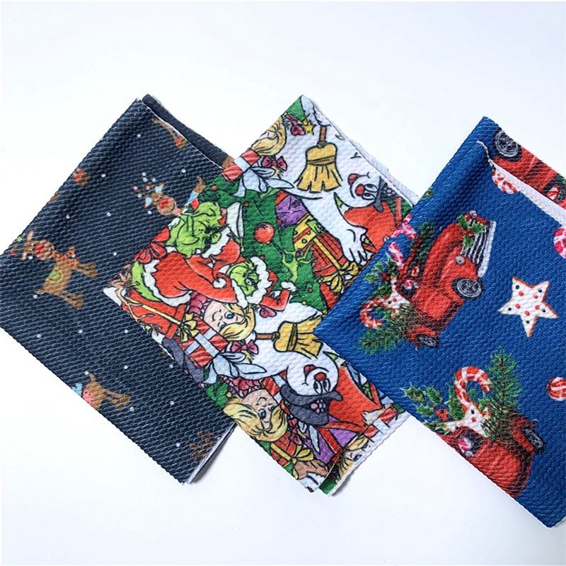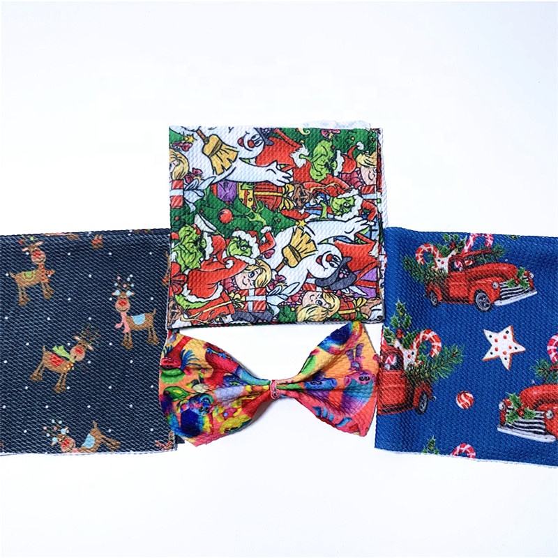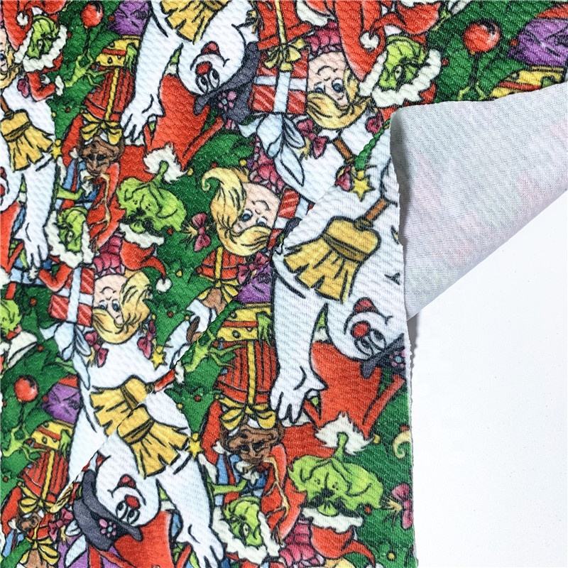 Rouleaux de tissu en jersey imprimé tricoté en spandex polyester bon marché Tissu de balle imprimé de Noël pour bandeaux