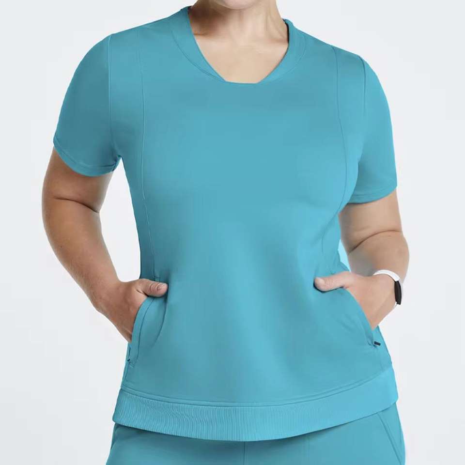 Tenues d'infirmière d'hôpital en polyester à col en V, fendues, avec logo personnalisé, tricotées, à prix abordable