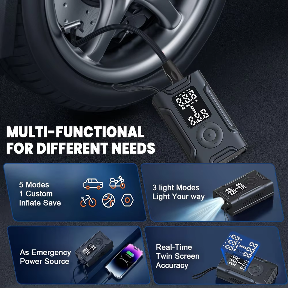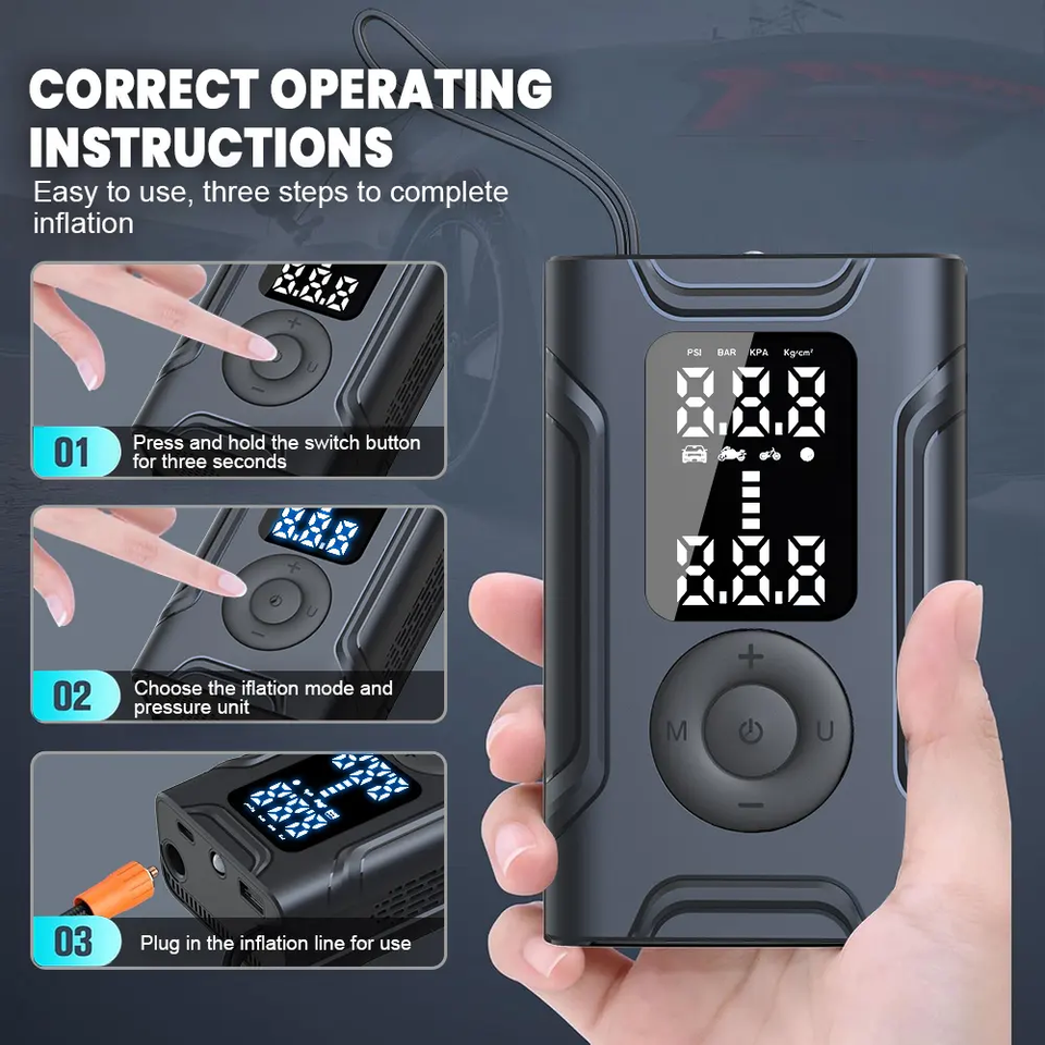 Lumière De secours, Indicateur de puissance, Moniteur de Pression des pneus, Portable, Arrêt automatique, Gonfler rapidementFonction