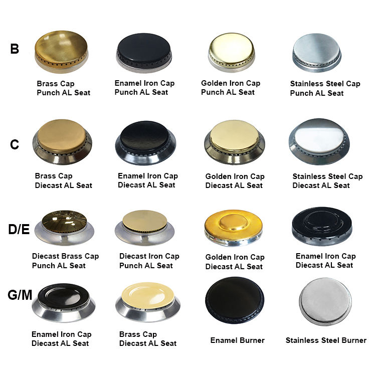 Bouchon de brûleur:Laiton / fer émaillé / fer doré / acier inoxydable