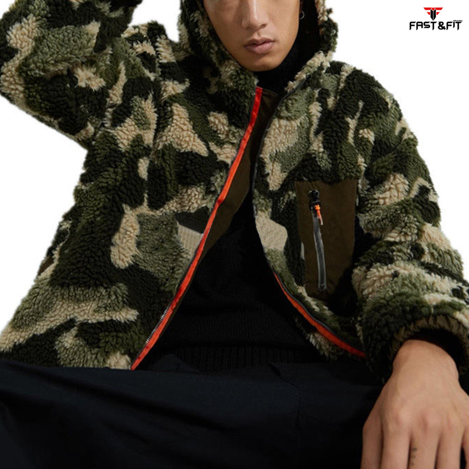 Prix pas cher 100% Polyester Camouflage Formal Sherpa Polaire Full Zip Printemps Veste Imperméable Coupe-Vent