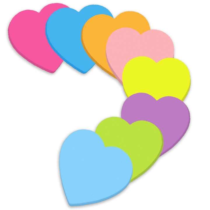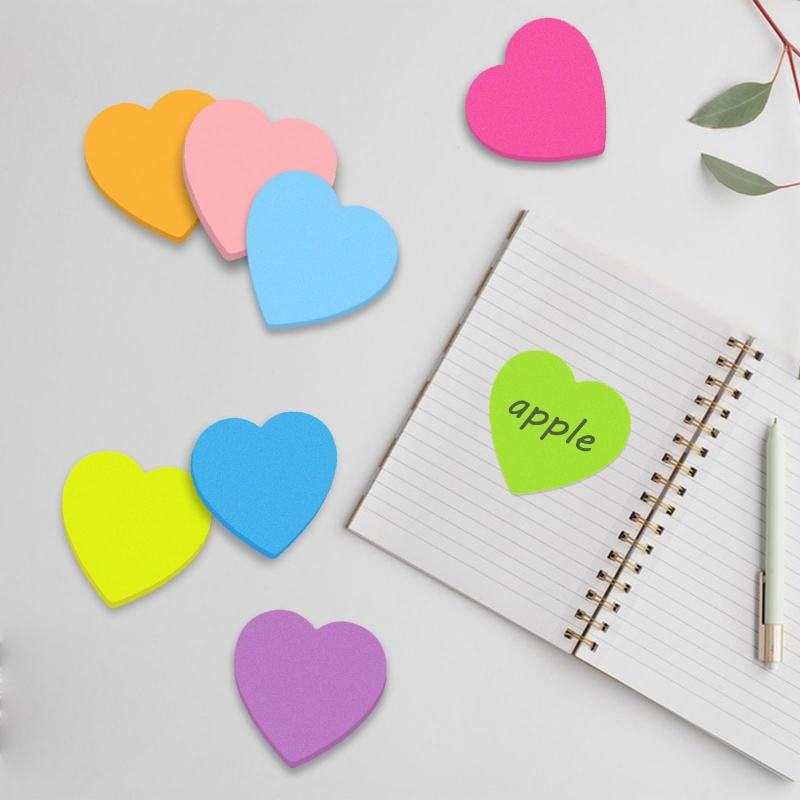 Bon marché Notes autocollantes en forme de coeur de 3x3 pouces Super mignon bloc-notes en papier de couleur vive Promotions adhésives fortes