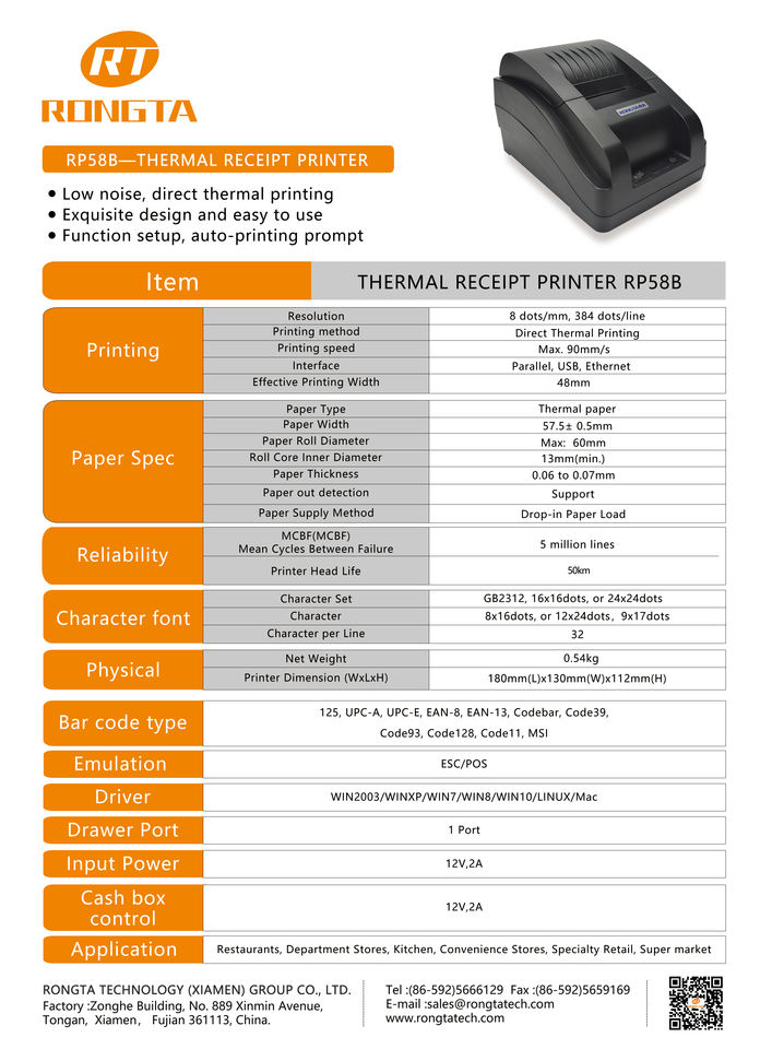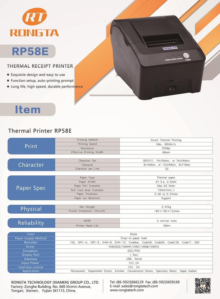 Nom du produit:58mm reçu imprimante coupe automatique