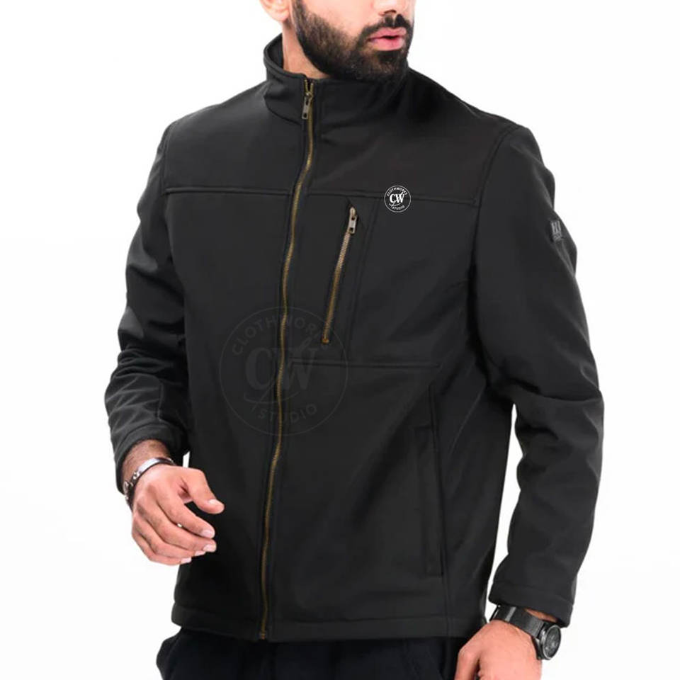 Veste en toile à col montant pour hommes, veste softshell respirante à fermeture éclair pour l'hiver