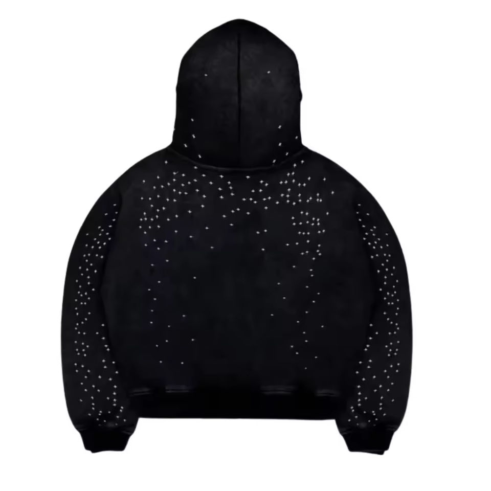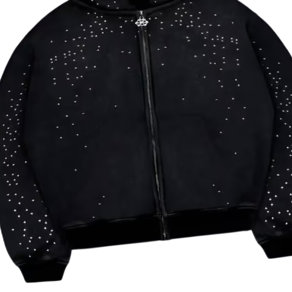 Sweat à capuche zippé unisexe surdimensionné en molleton noir avec strass, imprimé personnalisé, écologique, streetwear, poids lourd, 100% coton, prix abordable