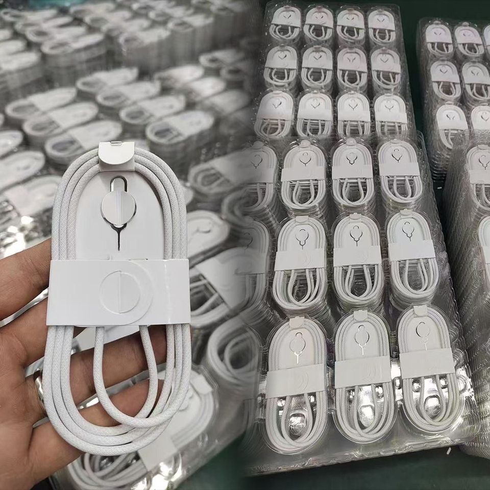 Câble plat USB-C tressé en nylon 1M 60W à prix abordable pour iPhone 15 16 17, câble de charge rapide et de données avec emballage en boîte