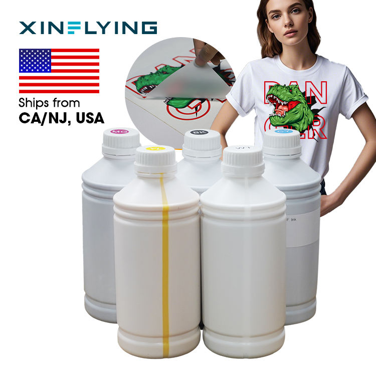 Encre de transfert pigmentaire à base de solvant pour impression numérique 5 couleurs CMYK+W, flacon de 1000 ml, prix avantageux, vente en gros