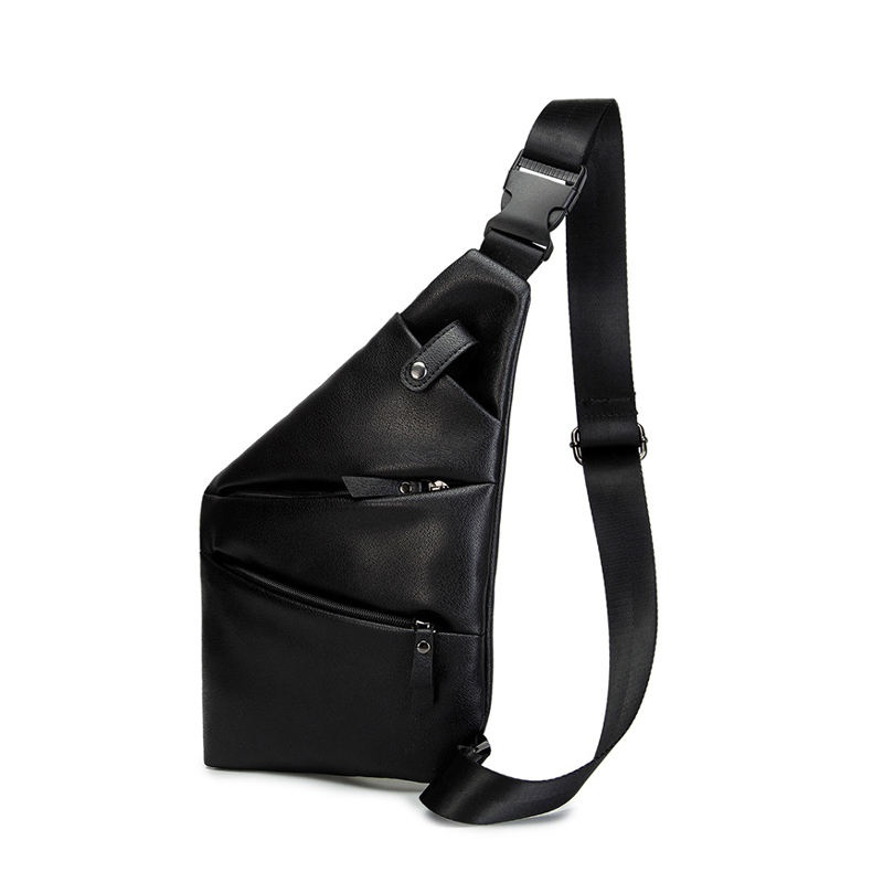 Sac à bandoulière en cuir noir vierge pour hommes, pas cher, LOGO personnalisé, cadeau promotion, sac de poitrine vierge, sacoche pour hommes
