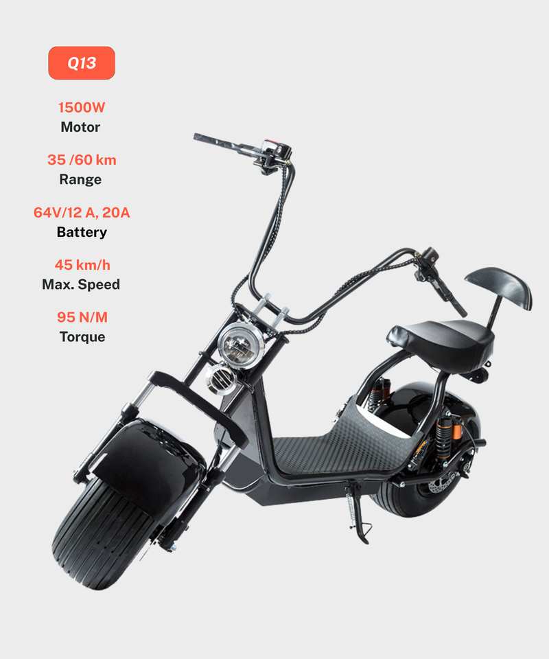 Scooter électronique E-mark Citycoco 1500W Citycoco pour adultes avec une vitesse maximale de> 45 km/h et une autonomie de 35 à 55km