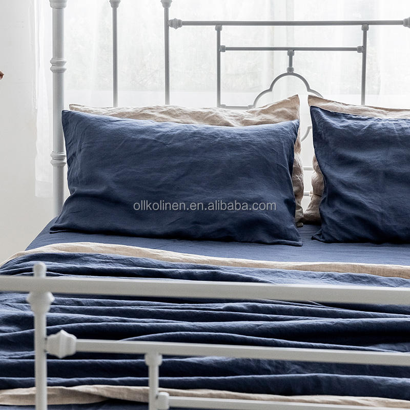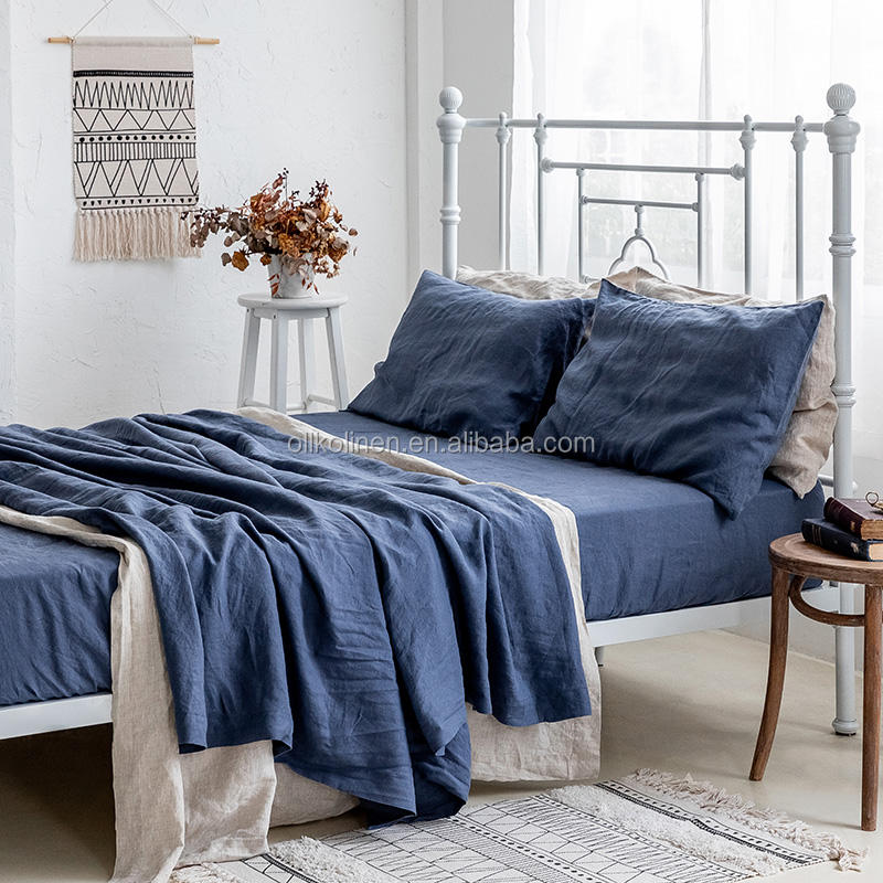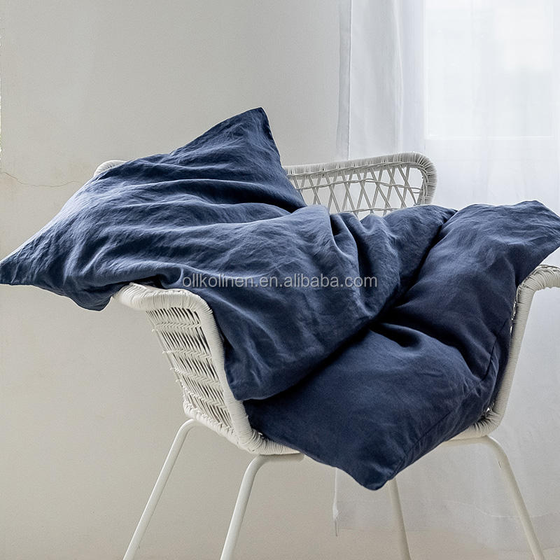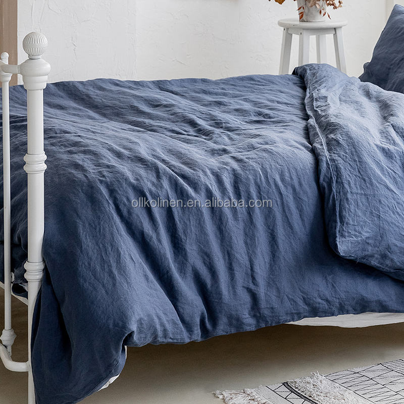 Housse de couette en lin bleu à prix avantageux, production en gros d'usine, 100% biologique, ensemble de literie naturel pour toutes les saisons