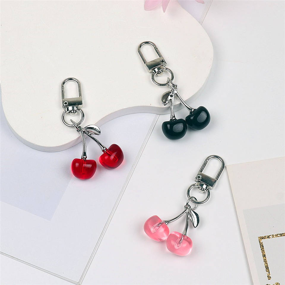 Porte-clés cerise rouge tendance à prix abordable, breloque de sac, pendentif, accessoire de bijouterie pour femme, porte-clés cerise pour sac de voiture, idéal pour les cadeaux d'anniversaire