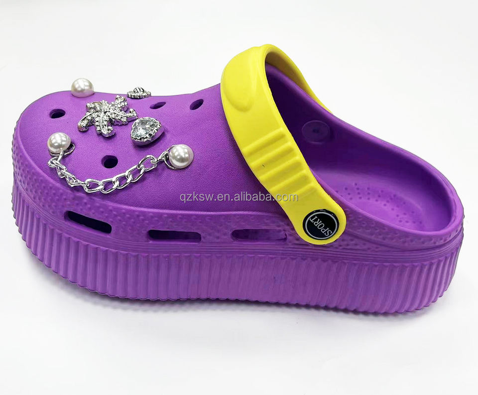 Tendance de la mode à prix bas Plate-forme épaisse charme agréable desgin décoration Lady Womens EVA Clogs Garden & mules pantoufles chaussures