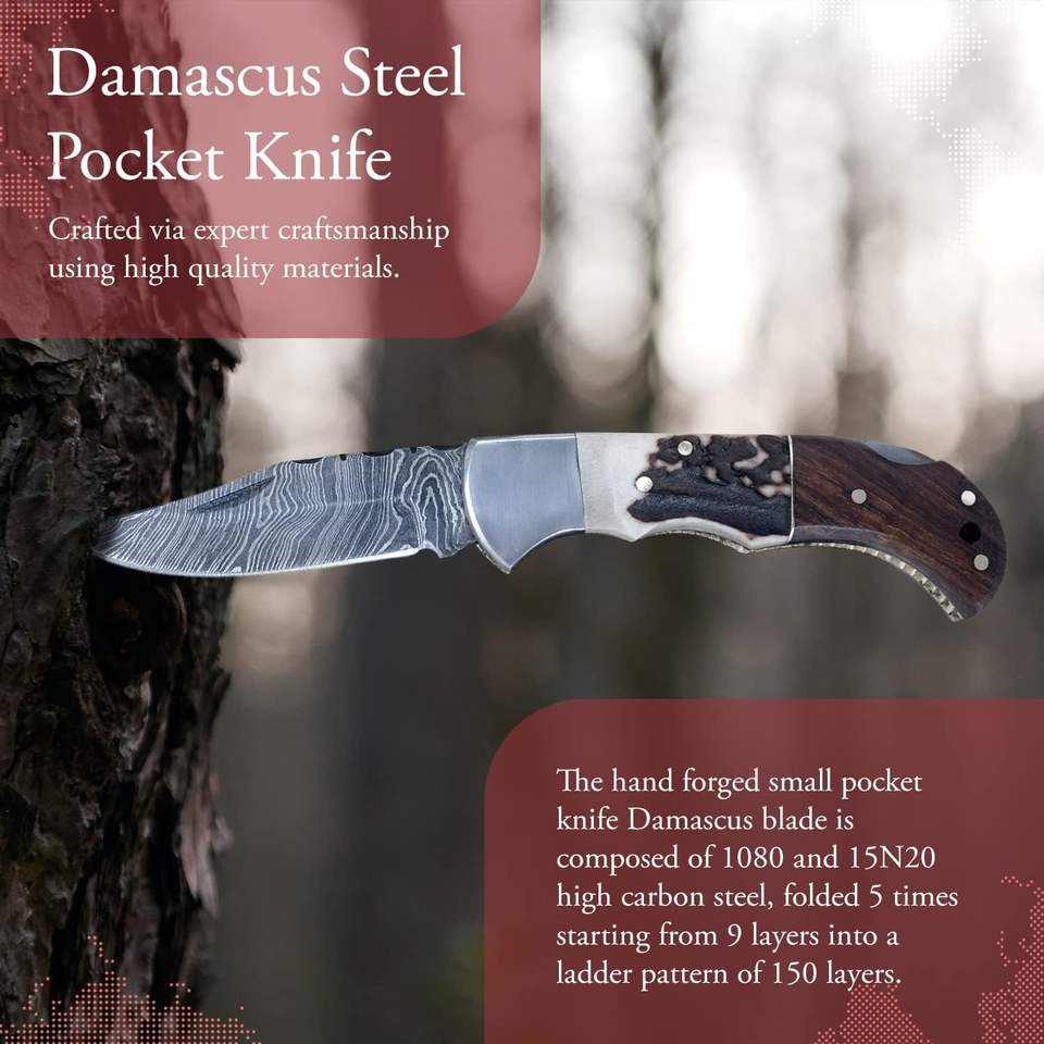Couteau de camping pliable à prix avantageux, style unique, couteaux pliants en acier Damas pour la vente en ligne, couteau de poche avec étui en cuir