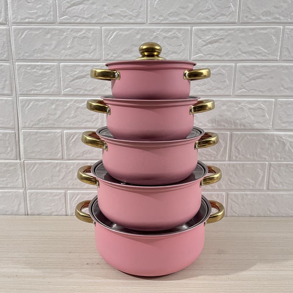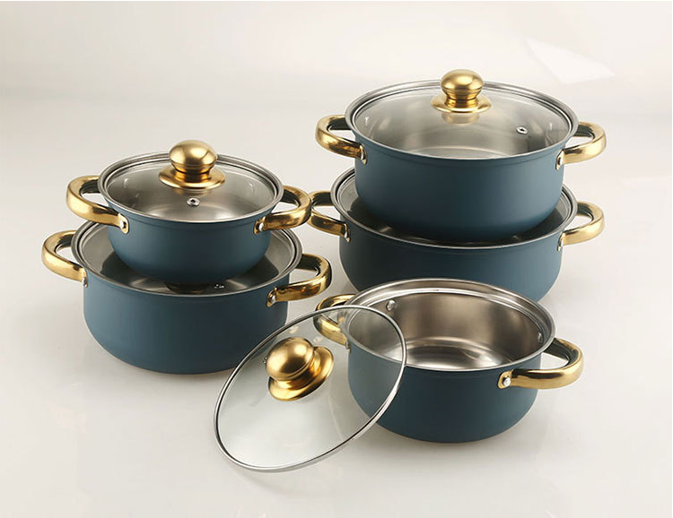 Prix Abordable Marmite Poignée Dorée 16-24cm Batterie de Cuisine 10 Pièces en Acier Inoxydable pour la Cuisine
