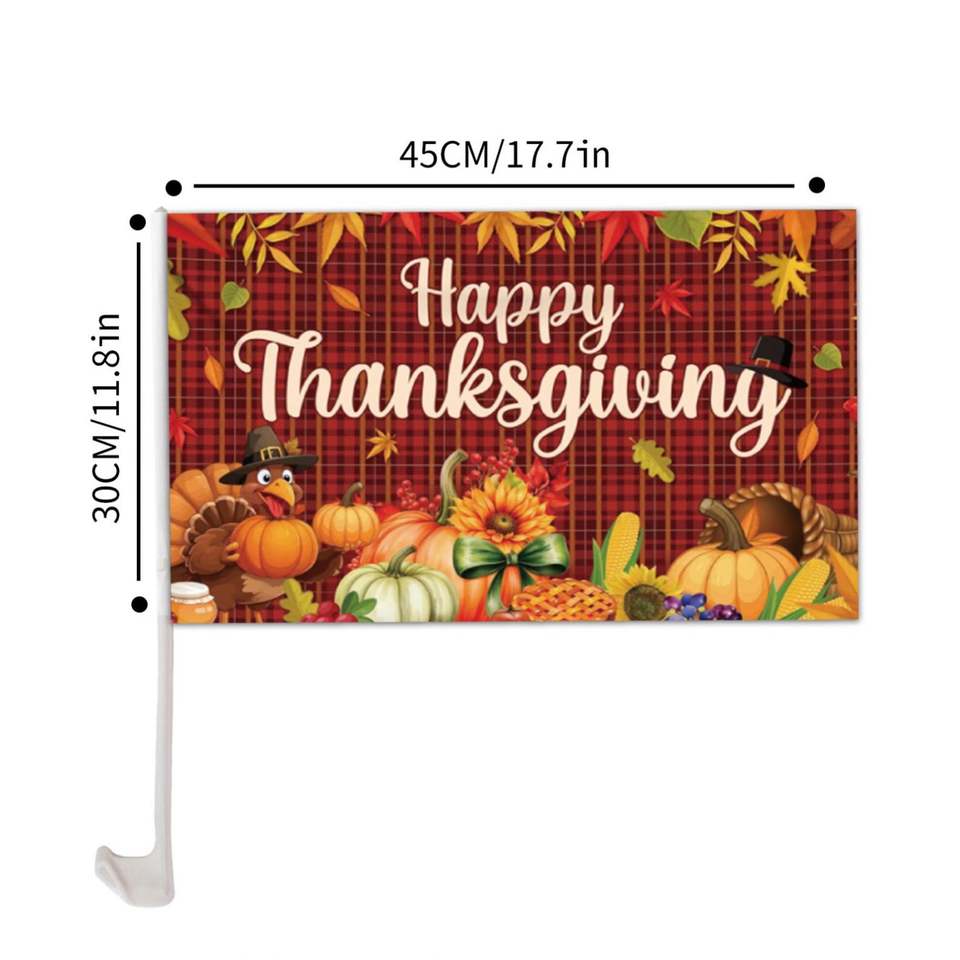 Drapeau de fenêtre de voiture à thème Thanksgiving à prix avantageux, 12x18 pouces, logo personnalisé, Turquie
