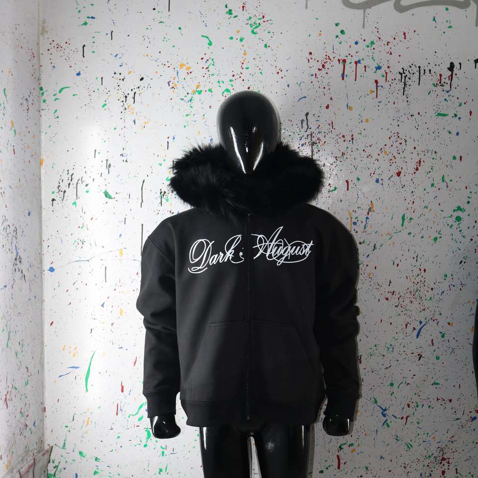 Sweat-shirt noir personnalisé avec impression sérigraphique, fermeture éclair et fourrure épaisse pour hommes URBAN PRODUCTIONS