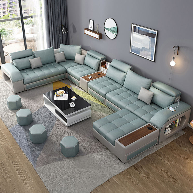 Cheap Price Home Modern Design Reclinable Blue Waterproof Relax Sectional Sofa Set Furniture 7 Seater for Living Room Bedroom