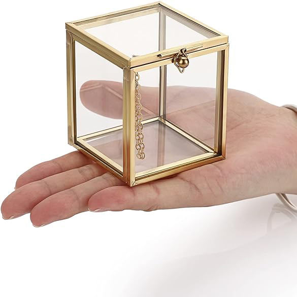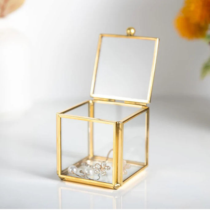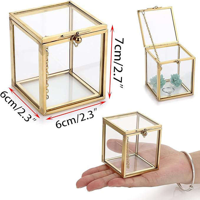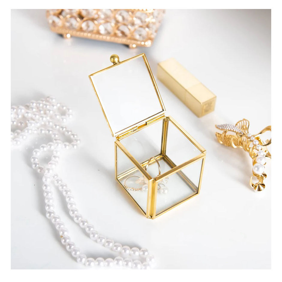 Cheap Price Indian Handmade Luxurious Square Personalized Metal Glass Jewelry Box Brass Frame Clear Transparent Glass Ring Boxe