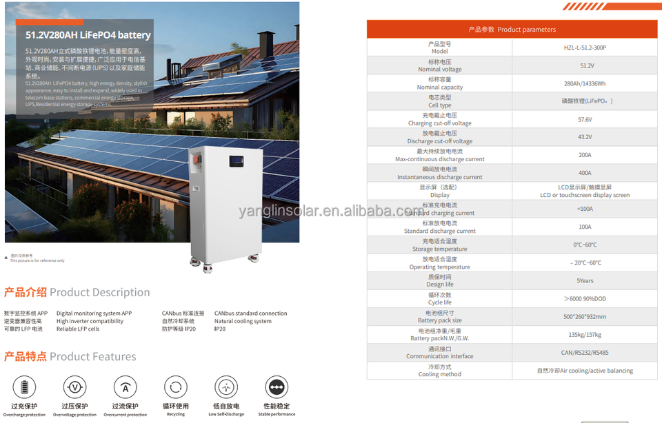 Prix bon marché batterie au lithium 48V/51.2V 100Ah 200Ah 280Ah batterie LiFePO4 pour système solaire résident hybride hors réseau