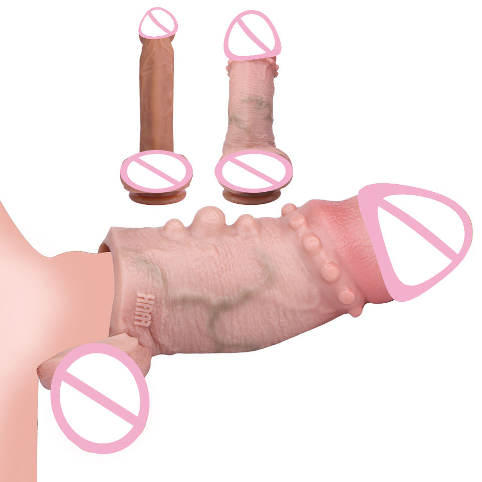 Pas cher Prix Hommes Préservatif Réutilisable Réaliste Dragon Cock Sleeve Pénis Sleeve Set Retarder L'éjaculation Plus Forte Érection pour les Couples
