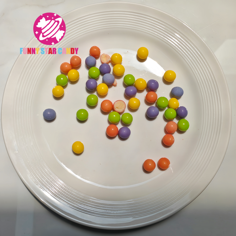 Bon marché Perles explosives à la menthe Chocolats Bonbons OEM Haleine fraîche personnalisée Mélange rond Confiture fruitée Chocolat dragée croustillant fourré