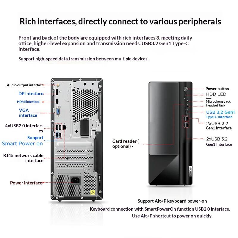 Ordinateur de bureau Lenovo Yangtian M460 à prix avantageux, original, commercial, Intel Core i3/i5/i7 12e génération, 8 Go de RAM, 512 Go de SSD