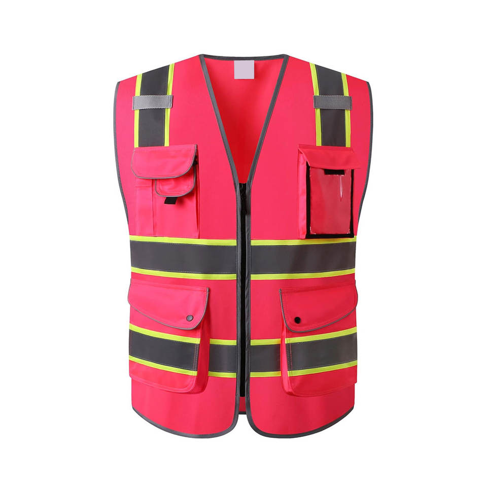 Bon marché Prix extérieur Construction réfléchissant haute visibilité gilet de sécurité haute qualité fermeture éclair Style Cargo poches gilet de sécurité