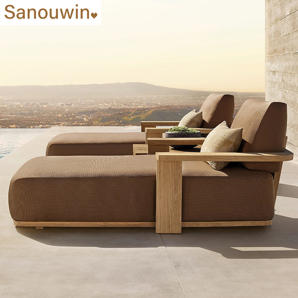 Nom du produit:Chaise longue extérieure en bois de teck avec table d'appoint