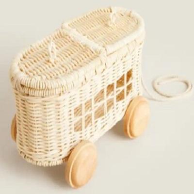 Chariot à jouets en rotin pour enfants