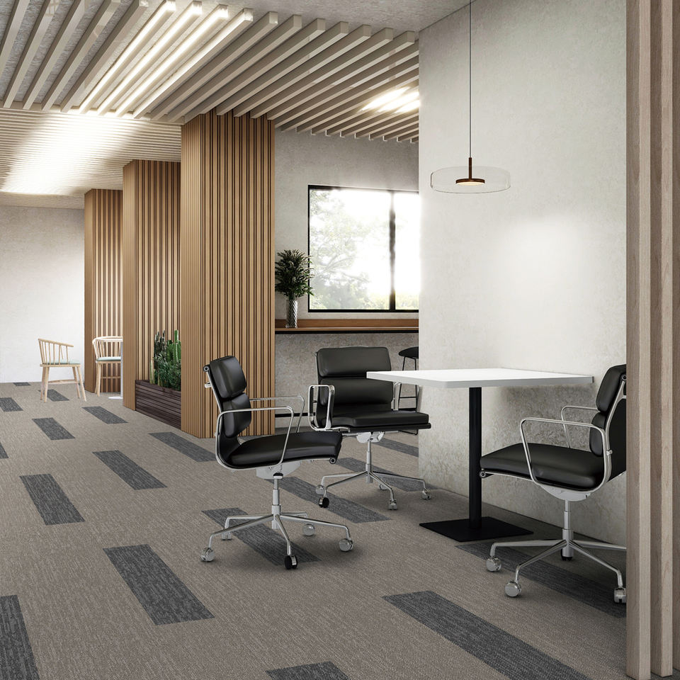 Dalles de moquette de bureau modernes à prix abordable, amovibles, épaisses, en PP commercial, à boucles adhésives, avec support en PVC rembourré