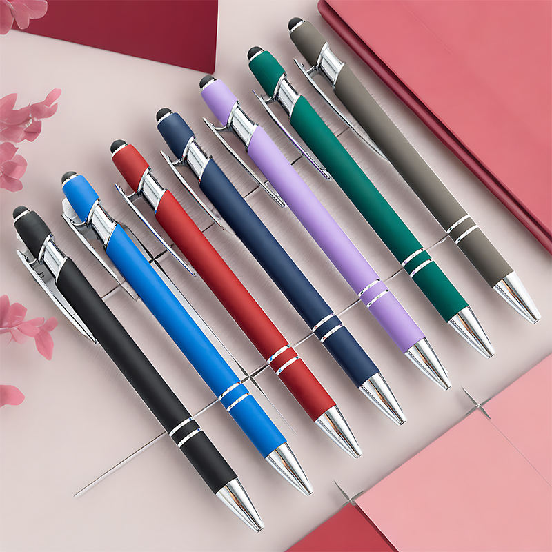 Bon marché Stylo à bille en caoutchouc d'encre noire au toucher doux pour un cadeau promotionnel en aluminium avec logo