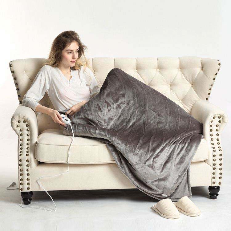 Couverture électrique chauffante en flanelle, plaid chaud, couleur grise unie, pas cher, pour l'hiver
