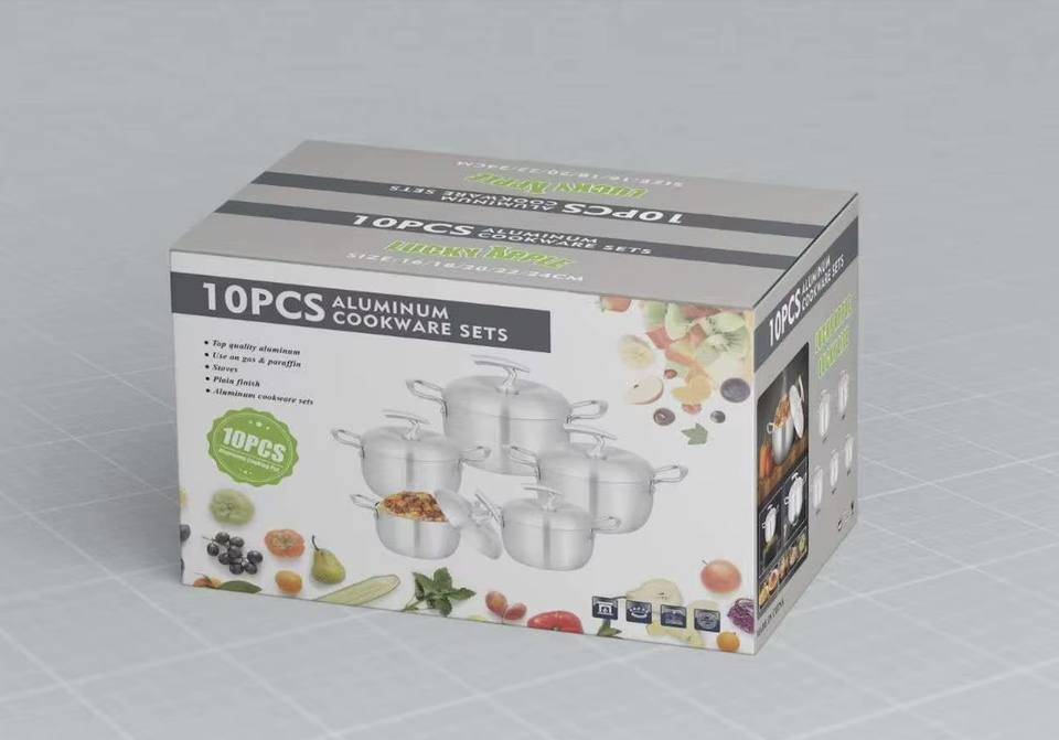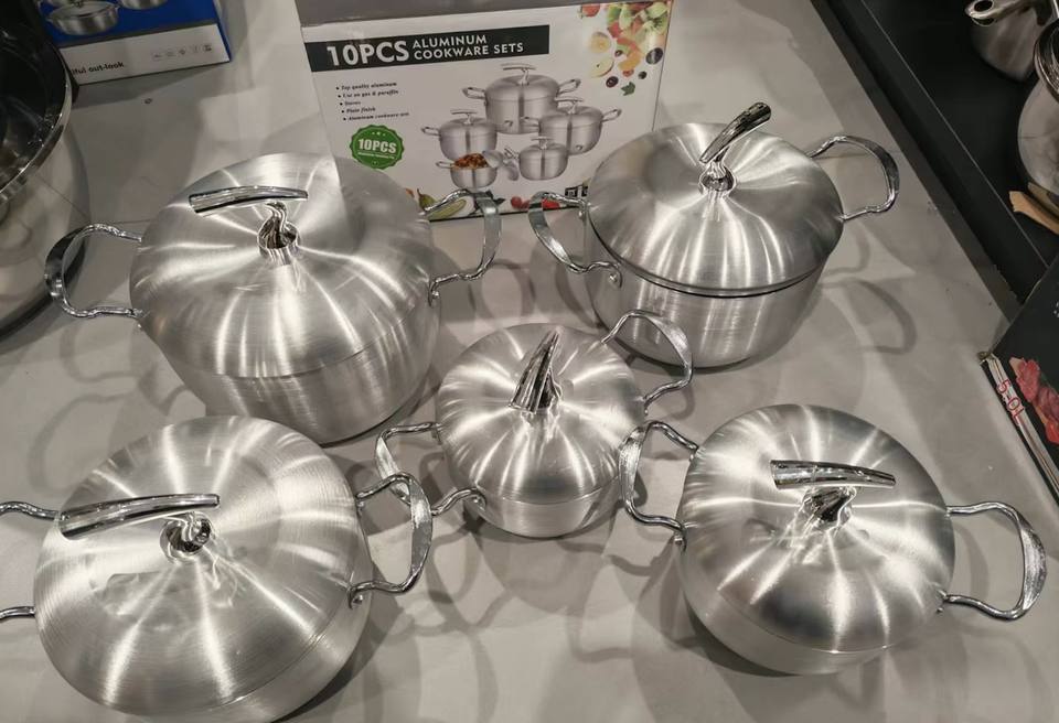 Ensemble de casseroles en aluminium filé à prix abordable, finition unie, 16-24 cm, batterie de cuisine 10 pièces pour cuisinière à paraffine