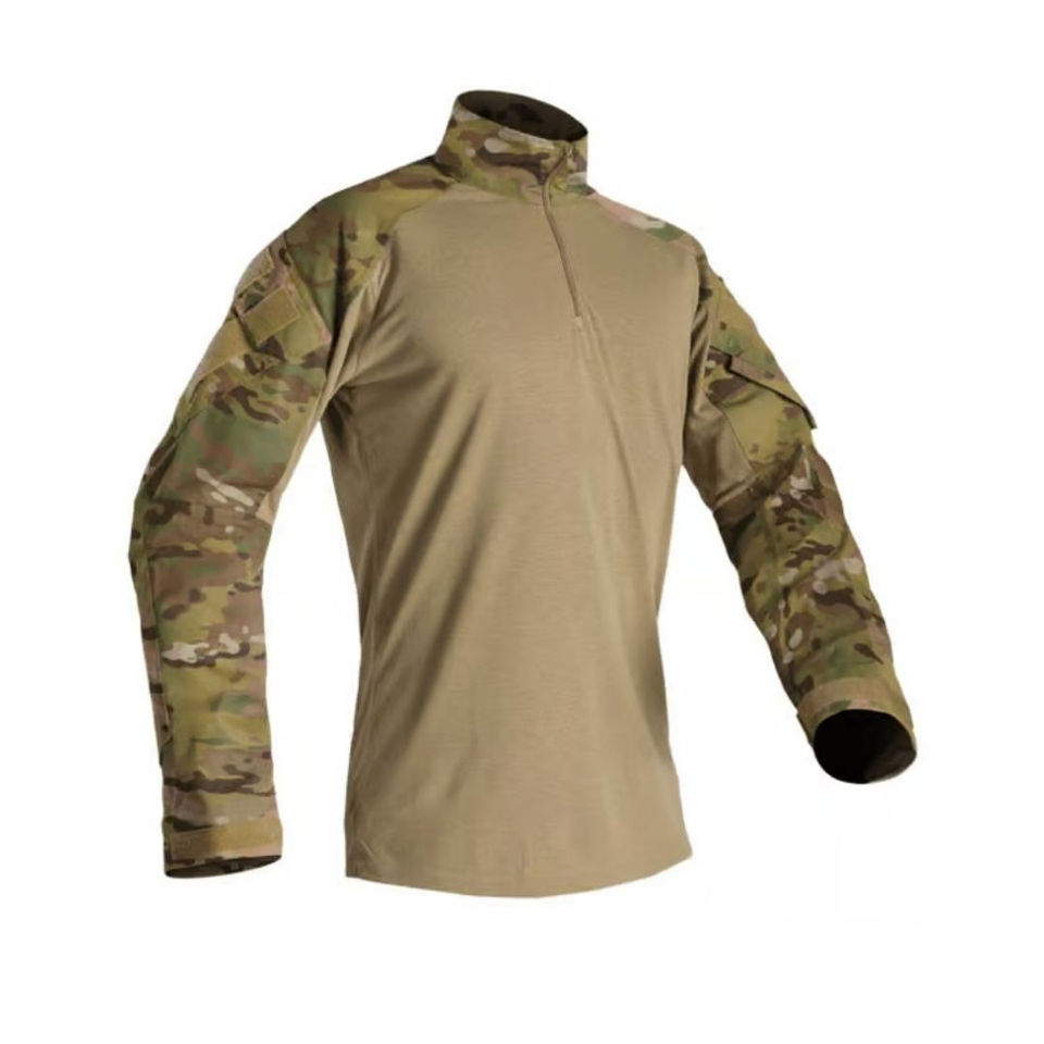 Chemise tactique à prix avantageux, motif camouflage uni, pour homme, en polyester et coton, manches longues, anti-humidité.
