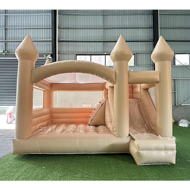 Château gonflable pour enfants à prix avantageux, couleur beige, avec toboggan