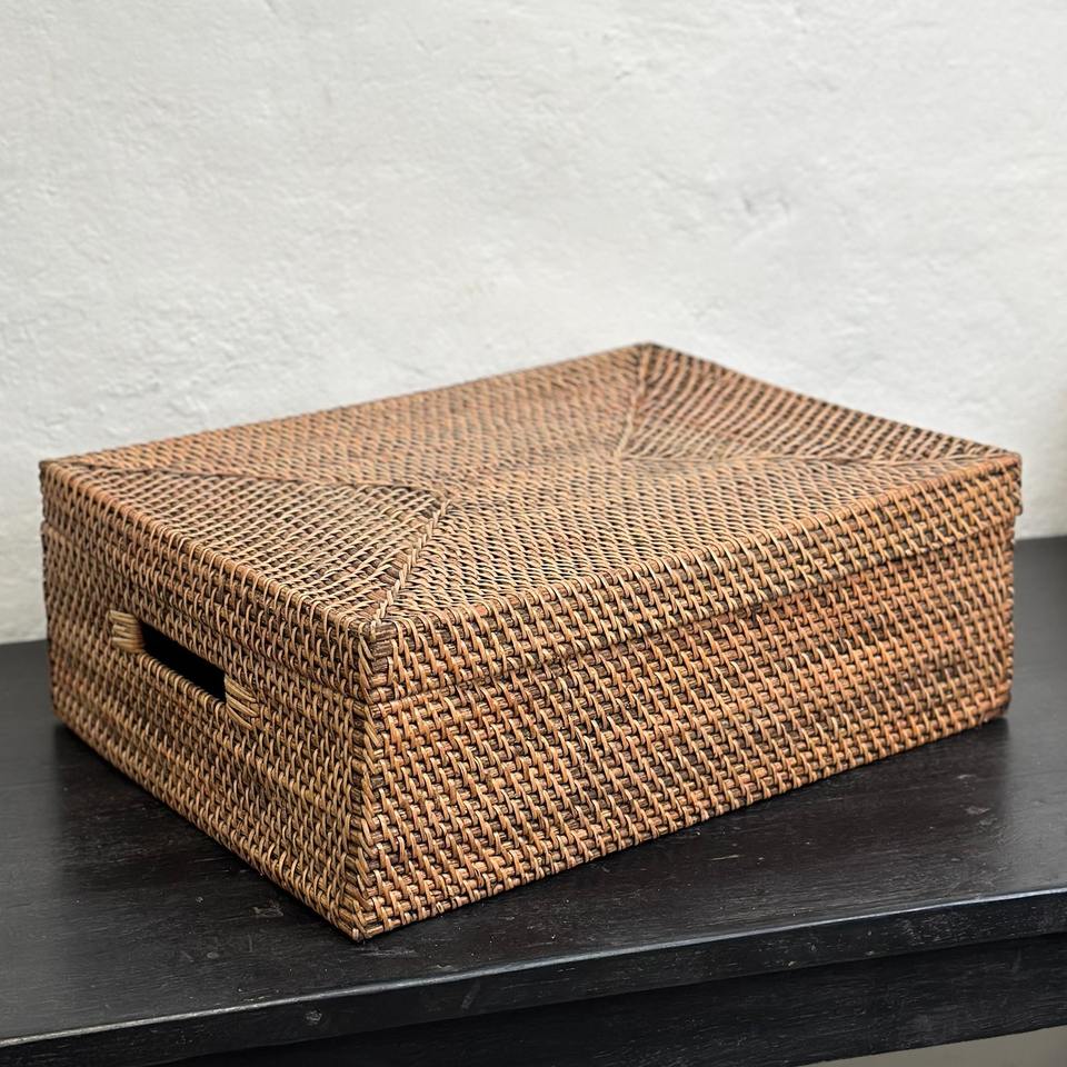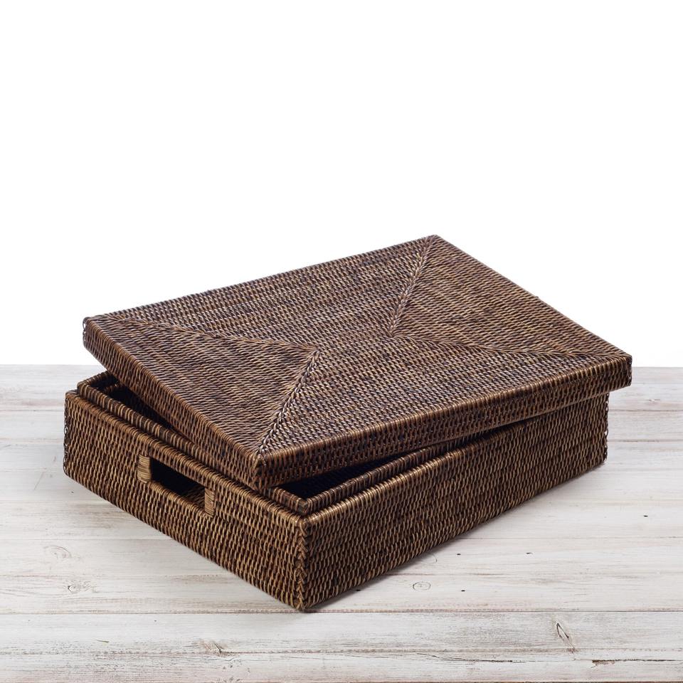 Boîtes de rangement empilables en rotin, boîte carrée rectangulaire en osier avec couvercle, prix bon marché