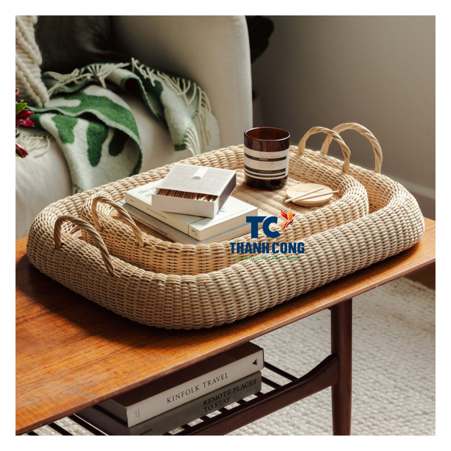 Prix pas cher VIETNAMIEN ROTIN PANIER PLATEAU pour Spa Réception Configuration Hôtel Chambre Accessoires ou Service Alimentaire Décor