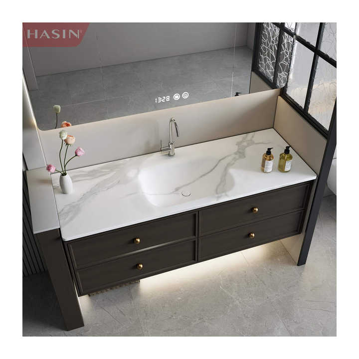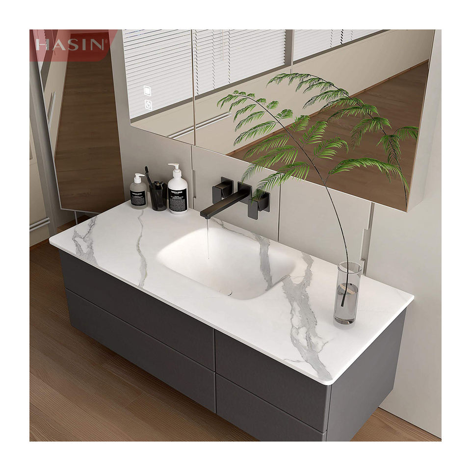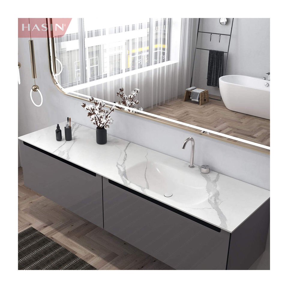 Bon marché Conception murale Pierre frittée Intered Luxe Hot Bending Intégré Combinaison de lavabo à double bassin