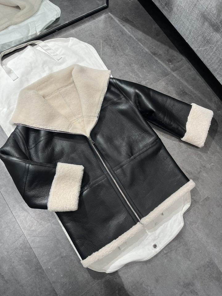 Veste en cuir d'agneau à col en fourrure de mouton, doublure en fourrure, fermeture éclair, prix bas pour femmes