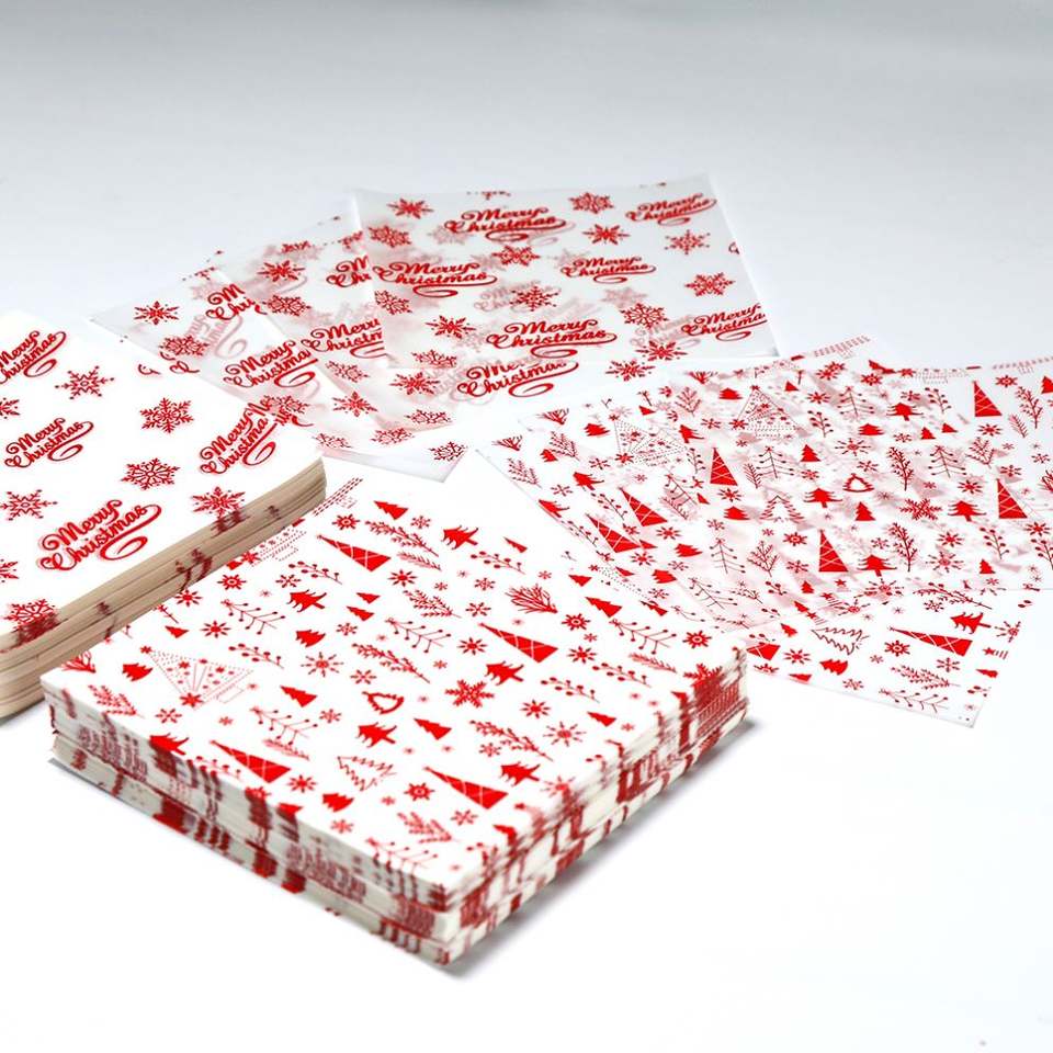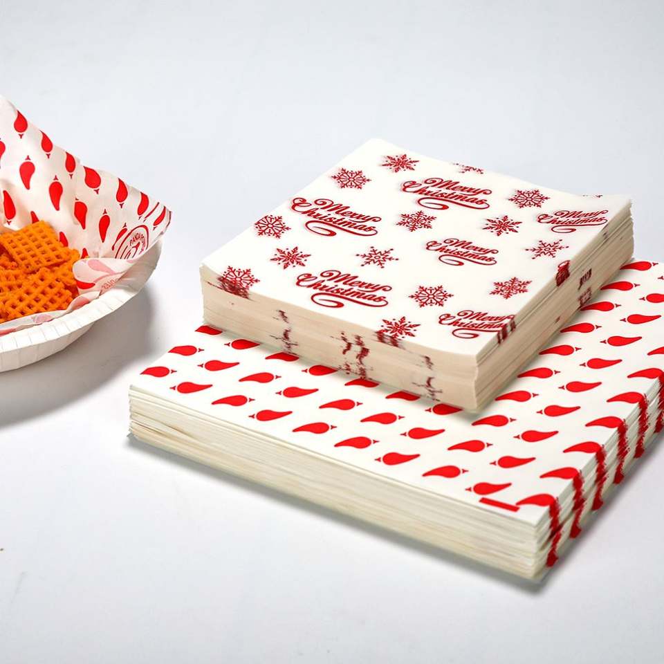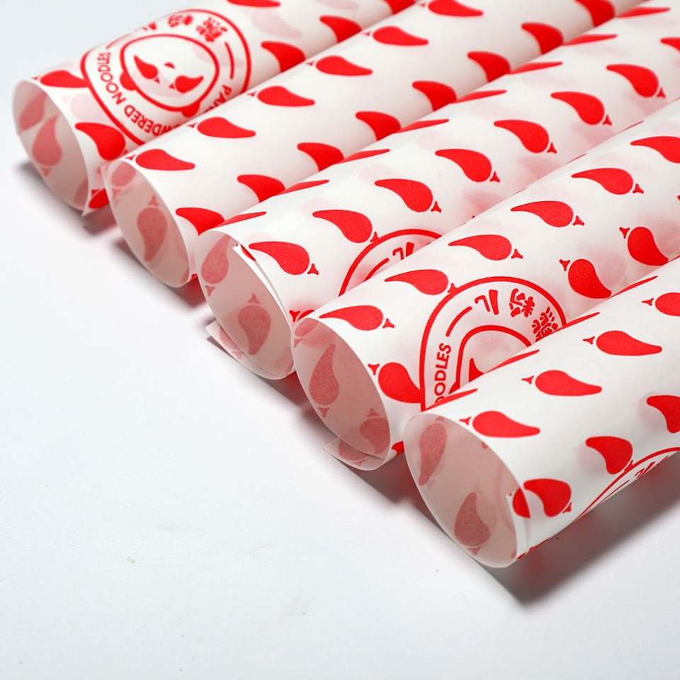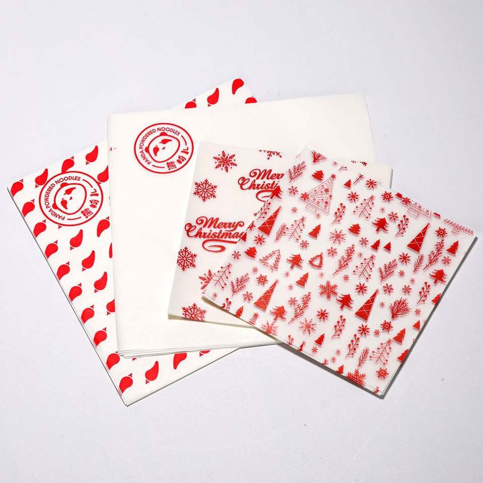 Papier alimentaire imprimé économique, enduit PE simple face, résistant à la graisse, spécial pour emballage de burgers, gâteaux et usage en restauration