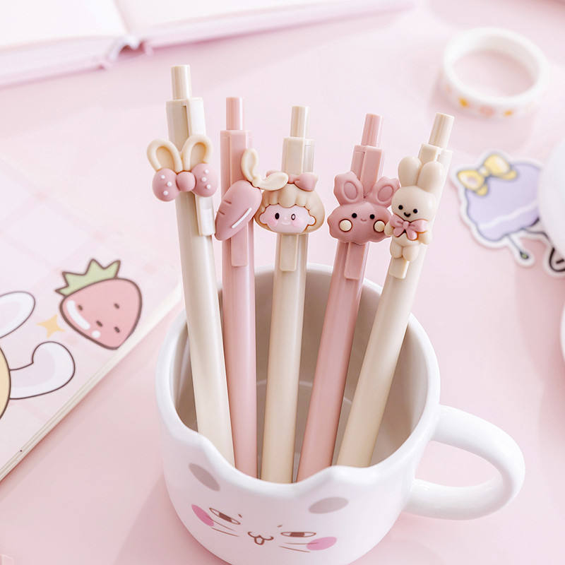 Stylo Gel à encre noire en plastique, 0.5mm, mignon, Kawaii, lapin rose, 10 pièces, bon marché, promotion