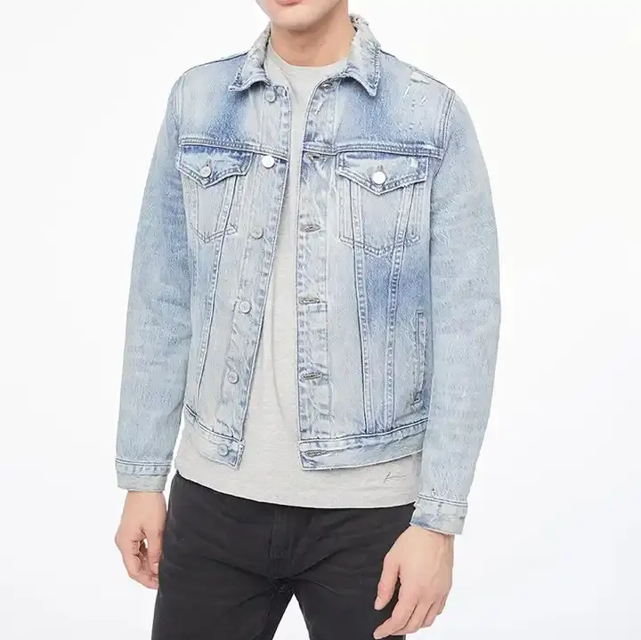 Veste en jean pour hommes à bas prix avec coupe classique, fermeture à boutons, manches longues et design décontracté élégant pour streetwear moderne et tendance
