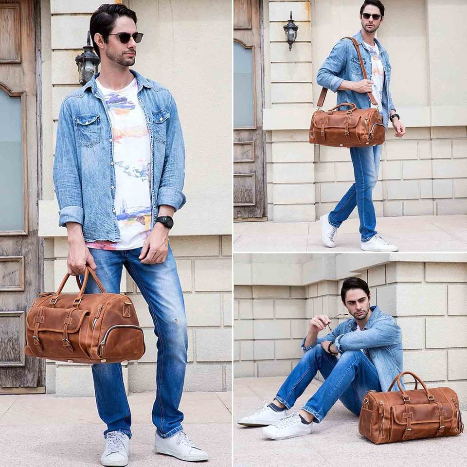 Sac de voyage et de sport unisexe ROYAL en cuir véritable de qualité supérieure, écologique, robuste, grand format, avec fermeture éclair, à prix abordable