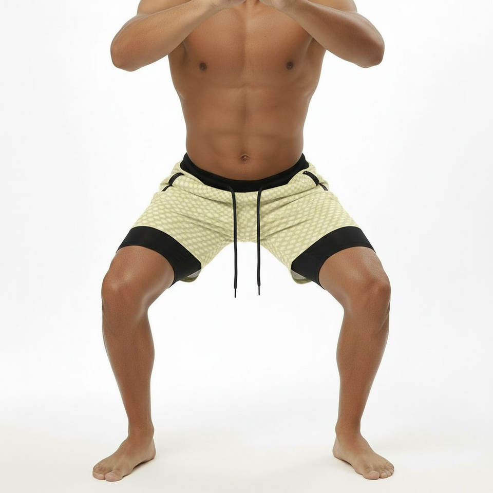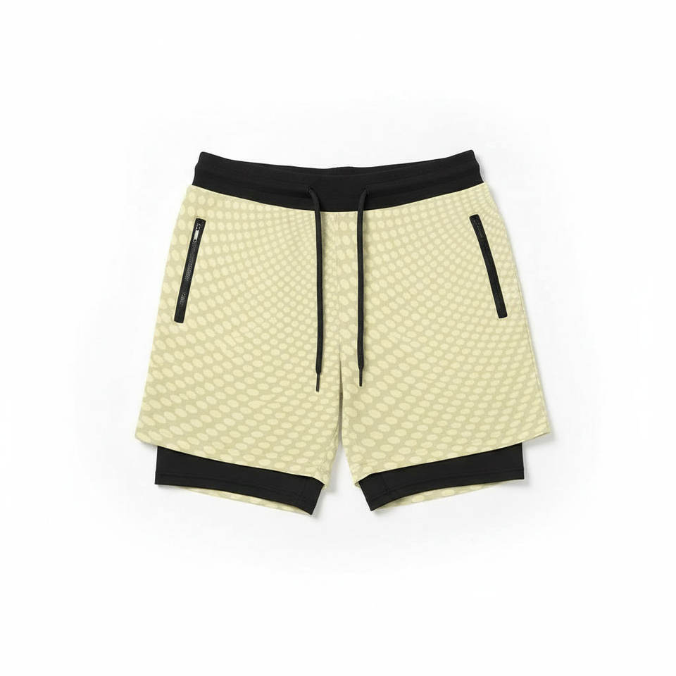 Shorts de sport écologiques à double couche, les plus vendus, à prix abordables, avec poches latérales zippées, pour la vente en gros et les étiquettes personnalisées