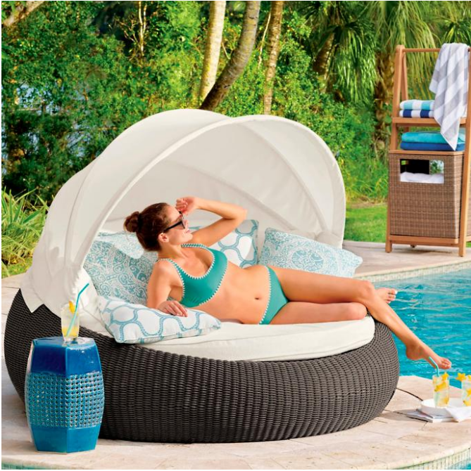 Lit rond imperméable en osier d'extérieur en rotin bon marché