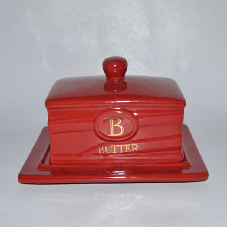 Boîte à pain carrée en céramique rouge vernie, style vintage européen, peinte à la main, avec couvercle, compatible micro-ondes, non toxique, sans plomb ni cadmium