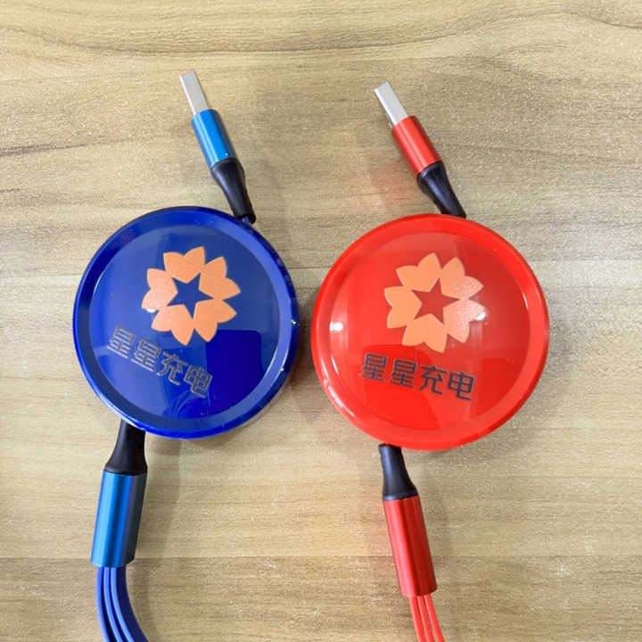 Câble de charge multifonction 3-en-1 rétractable pas cher avec logo personnalisé, 1,5 m, micro USB, multi USB, type C