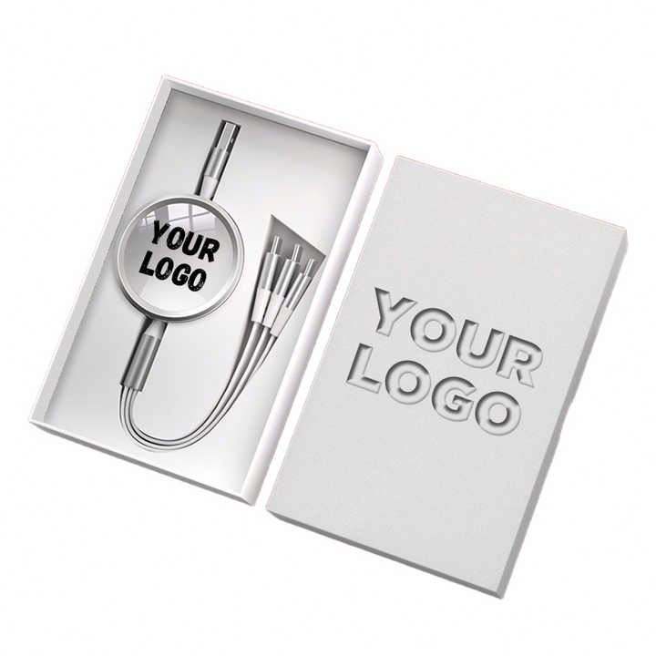 Câble de charge multifonction 3-en-1 rétractable pas cher avec logo personnalisé, 1,5 m, micro USB, multi USB, type C